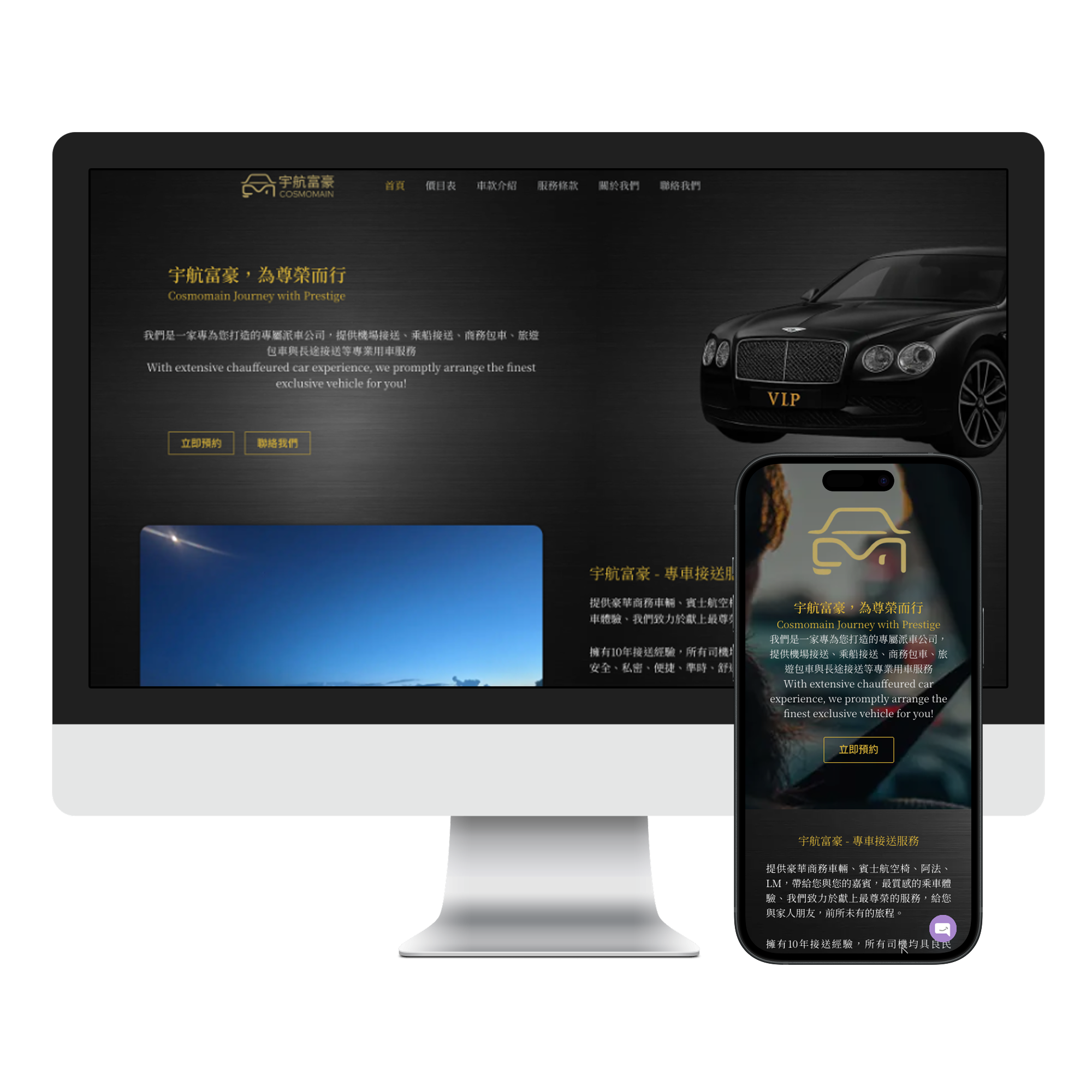 司機自創品牌,持續為人民服務,宇航富豪為主打高端機場接送與尊榮包車服務之品牌,目標客群為商務人士、企業接待客戶與重視服務品質的旅客。品牌希望在競爭激烈的接送市場中建立差異化形象,不僅提供接送服務,更強調安全、舒適與專業接待體驗。過往市場多以價格競爭為主,缺乏品牌化與透明定價模式,因此本專案協助品牌以公開價目表與高端形象,建立更具信任感與專業感的市場定位。