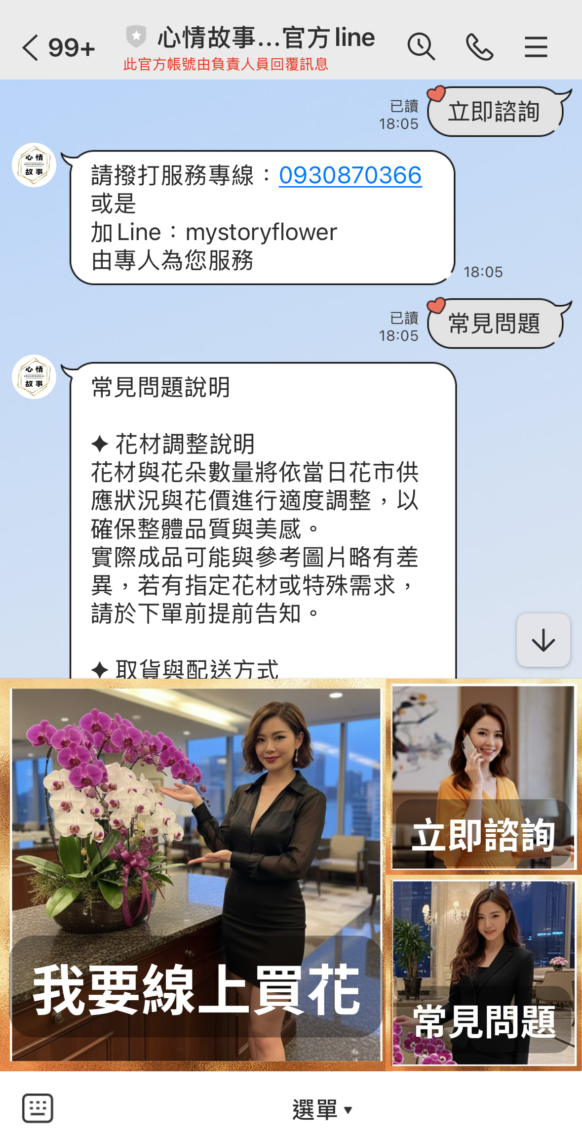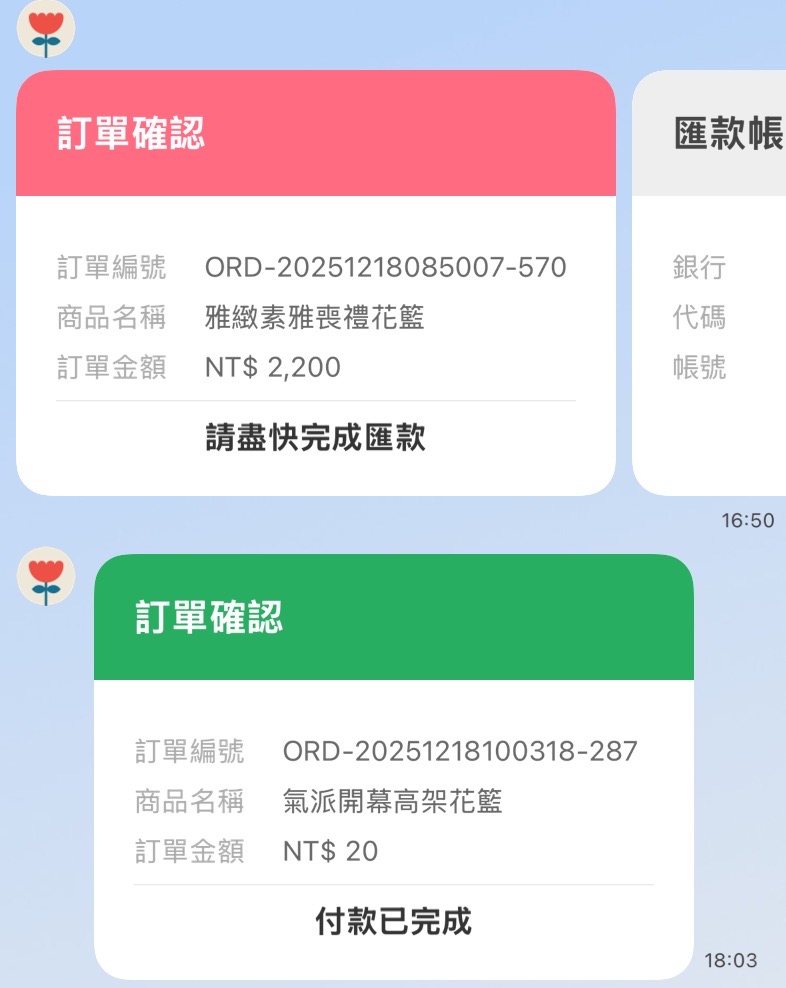 心情故事花房為主打情感傳遞與客製化花禮設計的品牌,客群多來自 LINE 官方帳號與社群互動。顧客習慣透過 LINE 詢問商品與下單,但過去訂購流程仰賴人工回覆與轉帳確認,流程繁瑣且耗費人力。