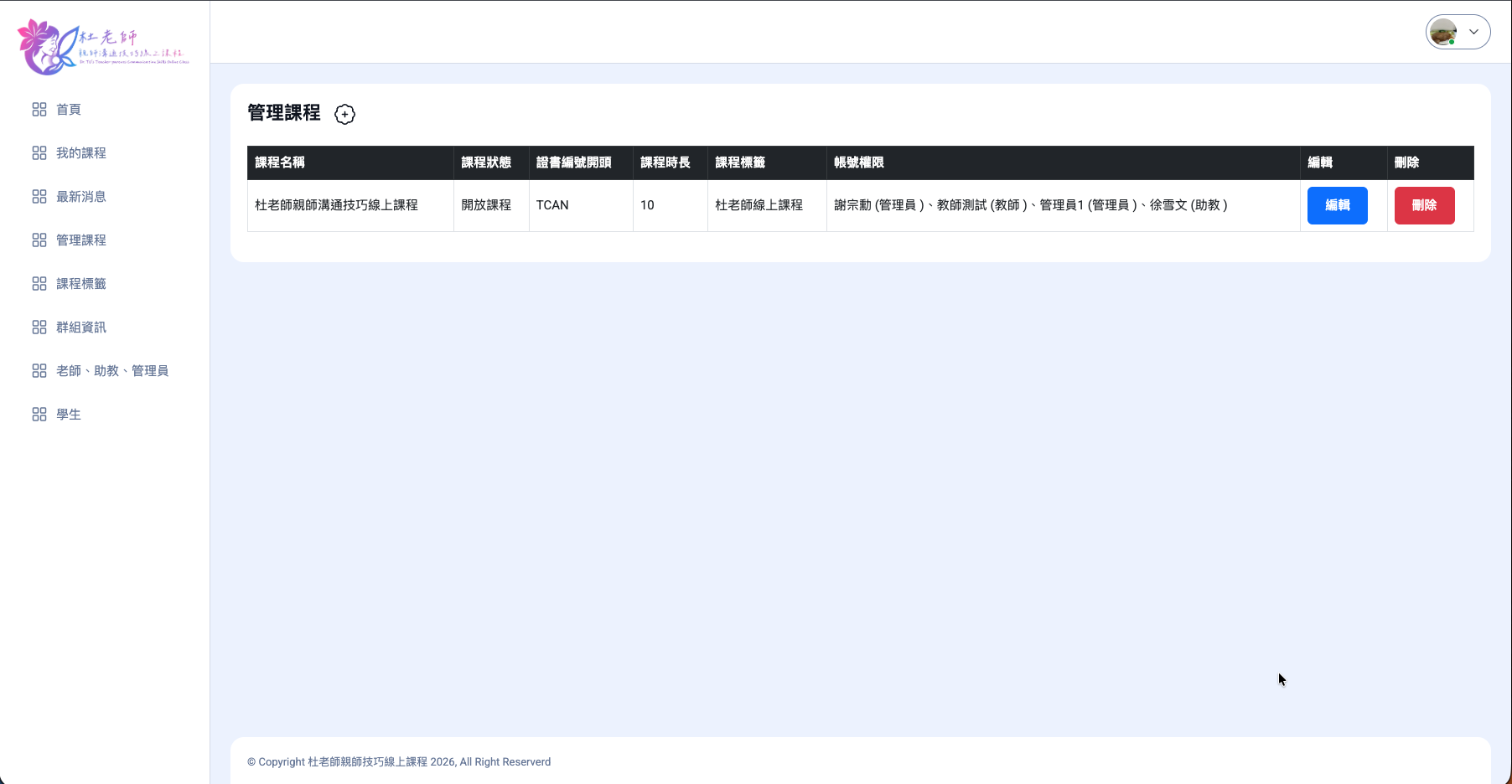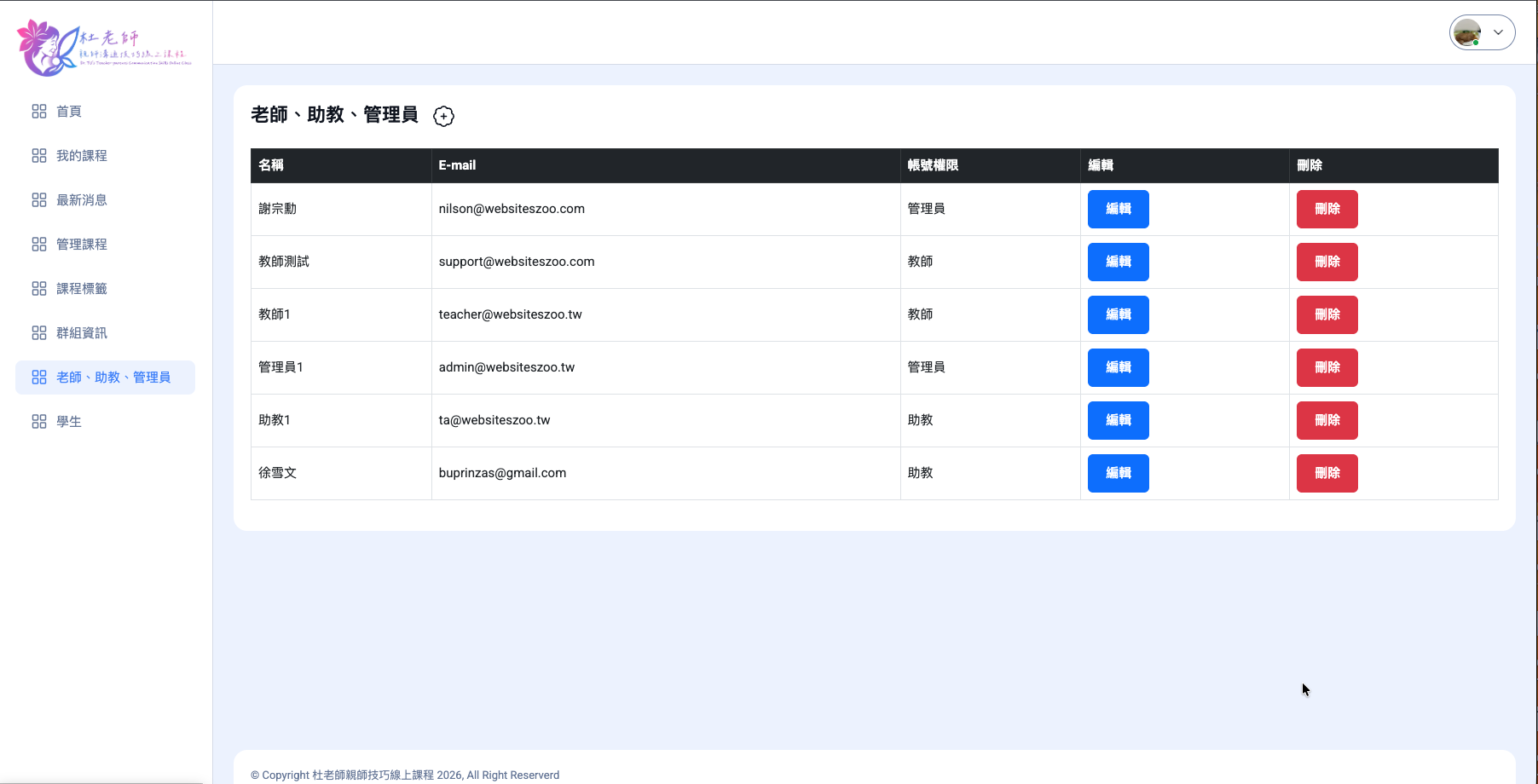 權限管理-教師/管理員