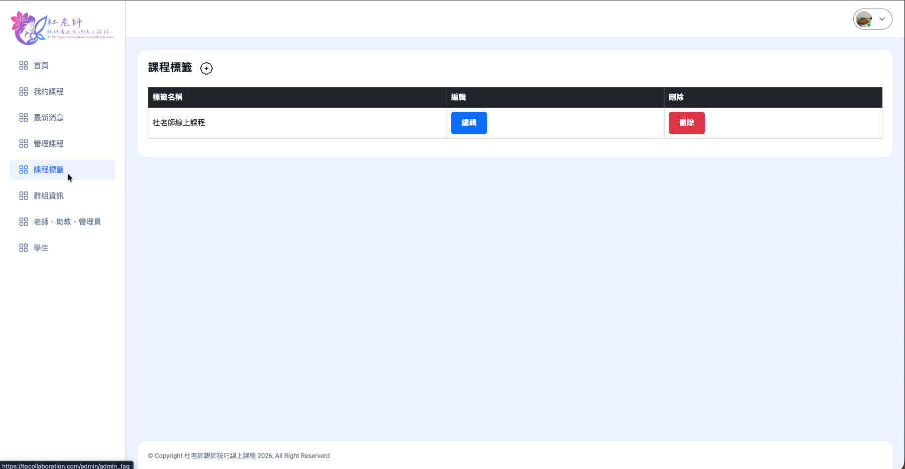課程分類標籤設定