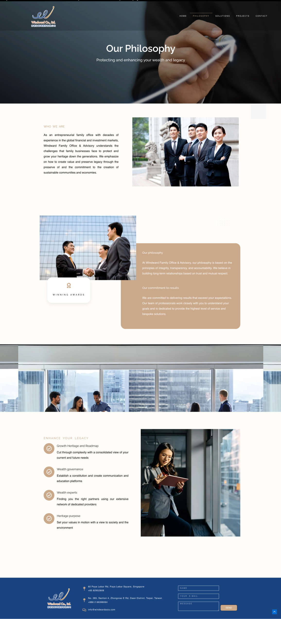 本專案目標在於建立穩重且具高端質感的企業門面,強化顧問專業形象並提升國際客戶的信任感。網站需清楚傳達服務深度與策略價值,同時成為企業品牌長期經營與市場拓展的重要基礎。