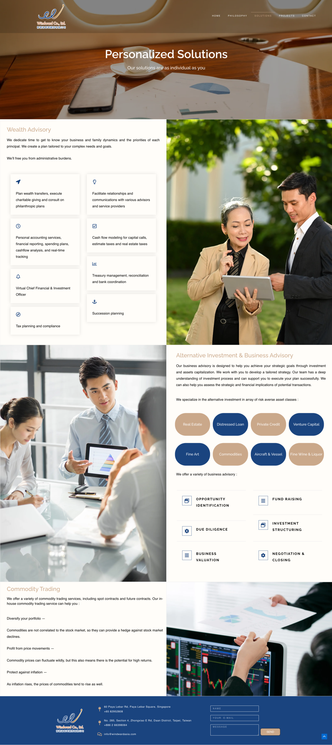 肯麥迪管理顧問公司為立足新加坡的專業顧問機構,服務範圍涵蓋財務規劃、資產配置與投資策略諮詢,客群以企業主與高資產族群為主。隨著業務國際化發展,公司需要一個具專業感與國際格局的官方網站,以提升品牌信任度與市場競爭力。