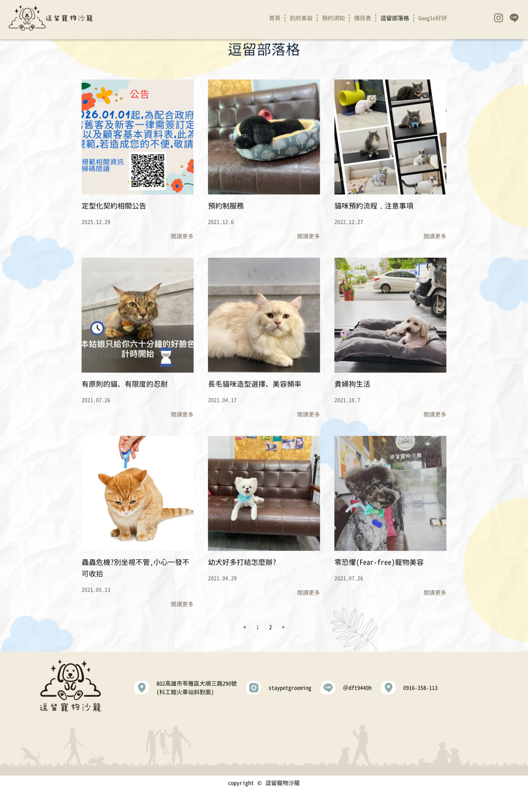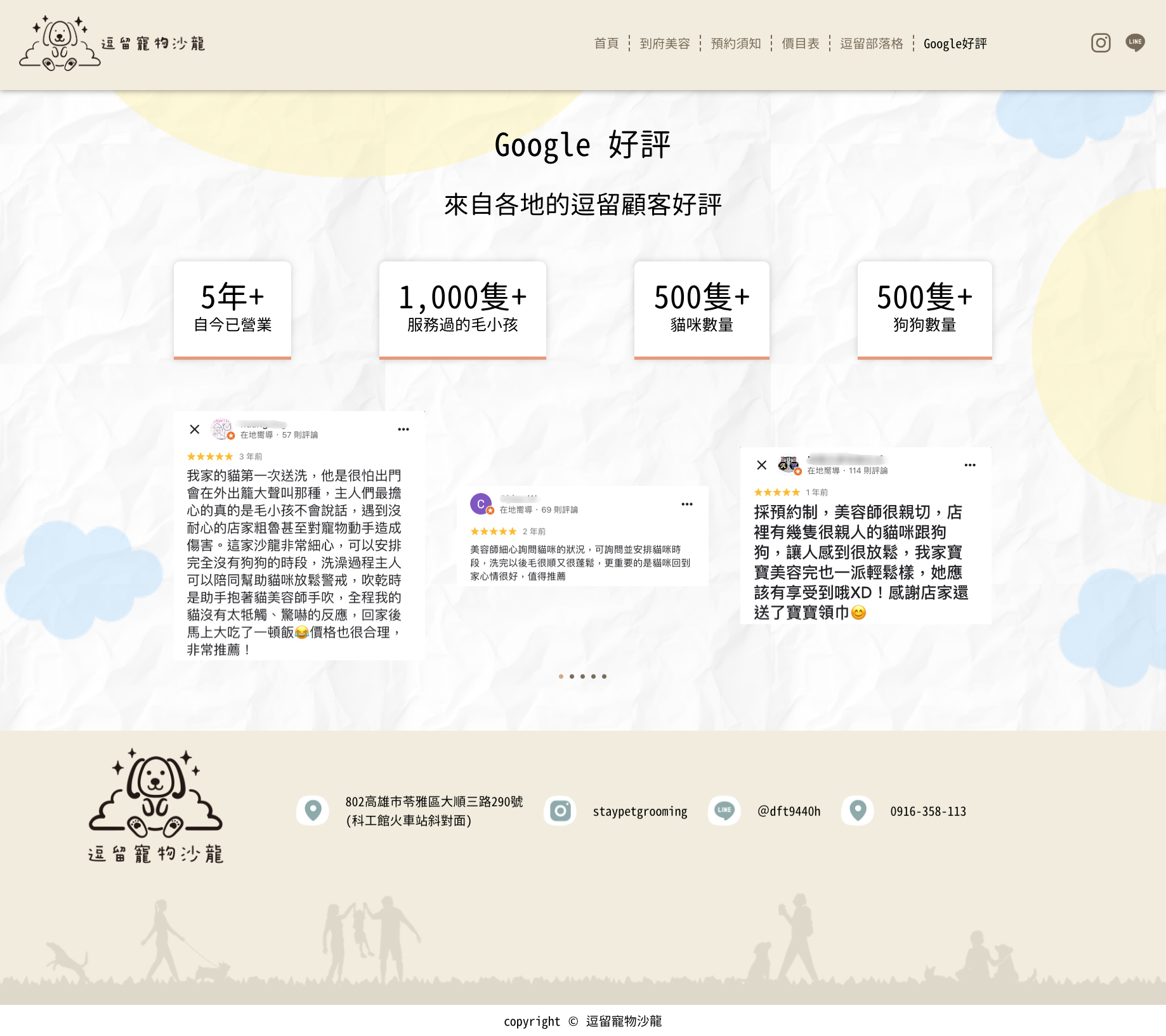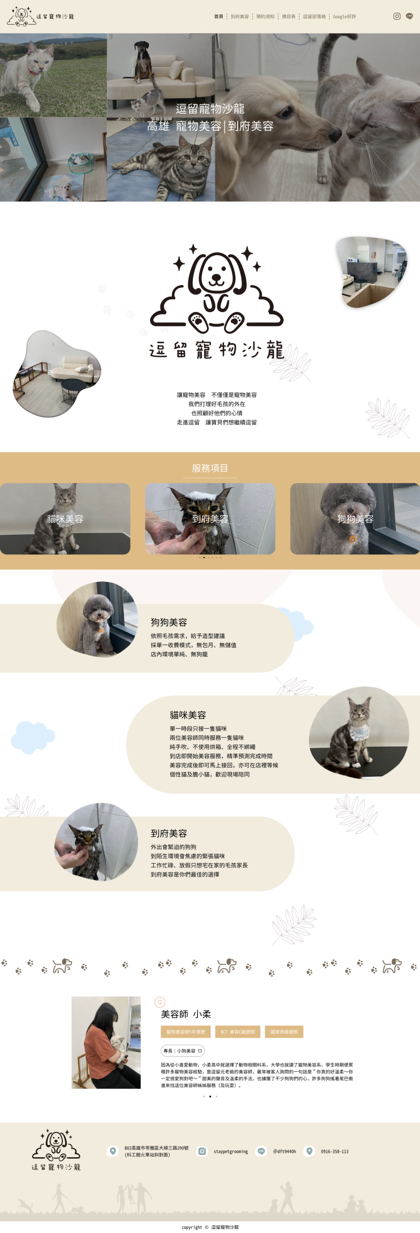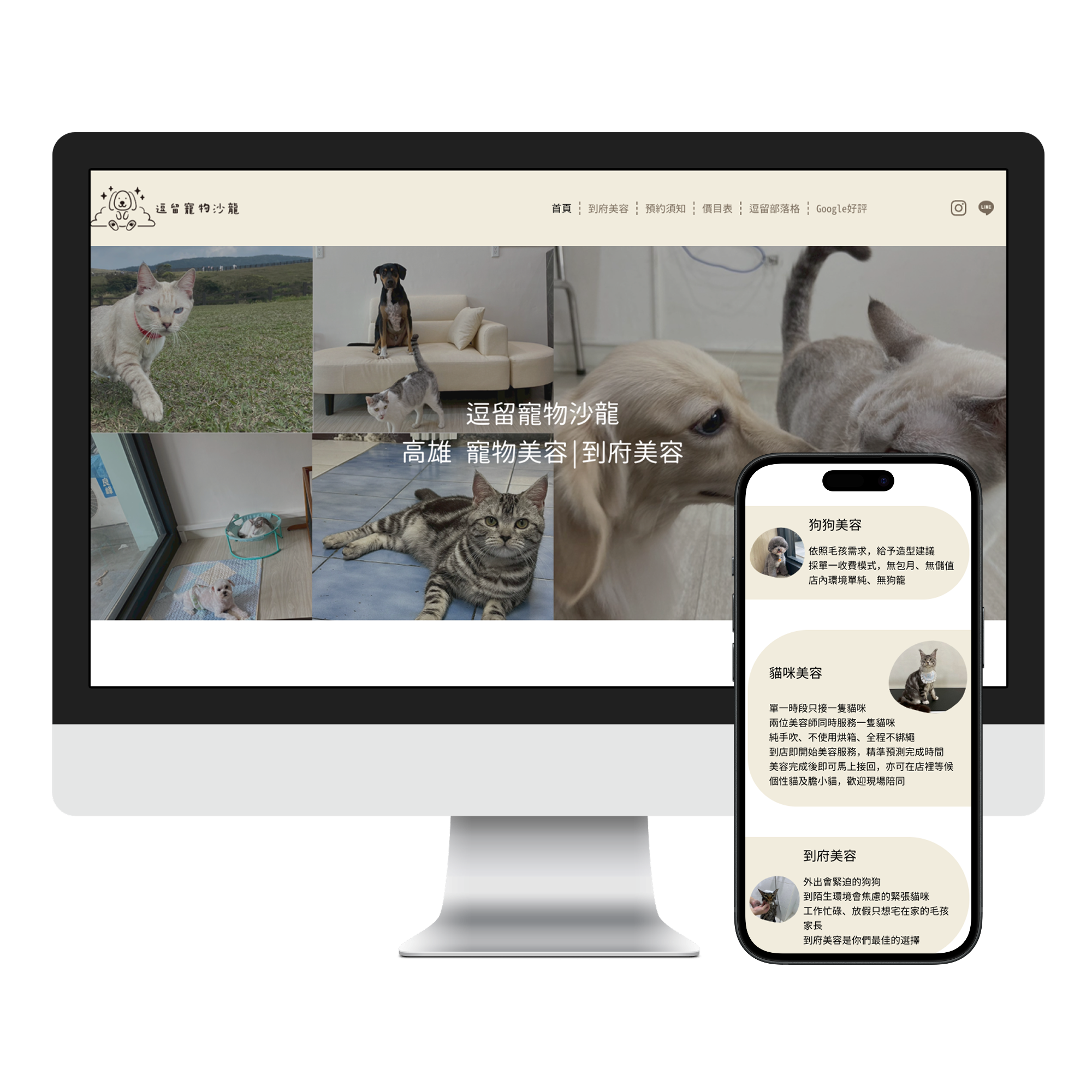 逗留寵物沙龍為高雄在地經營的寵物美容店,主打細緻手法與溫馨環境,重視毛孩情緒與安全感。隨著市場競爭加劇與消費者搜尋習慣改變,店家意識到品牌若缺乏正式官網,在數位世界中將難以被看見。 過去主要透過口碑與社群經營累積客源,但在資訊搜尋與品牌信任建立上仍有成長空間,因此決定建置形象官網,作為品牌對外的正式窗口。