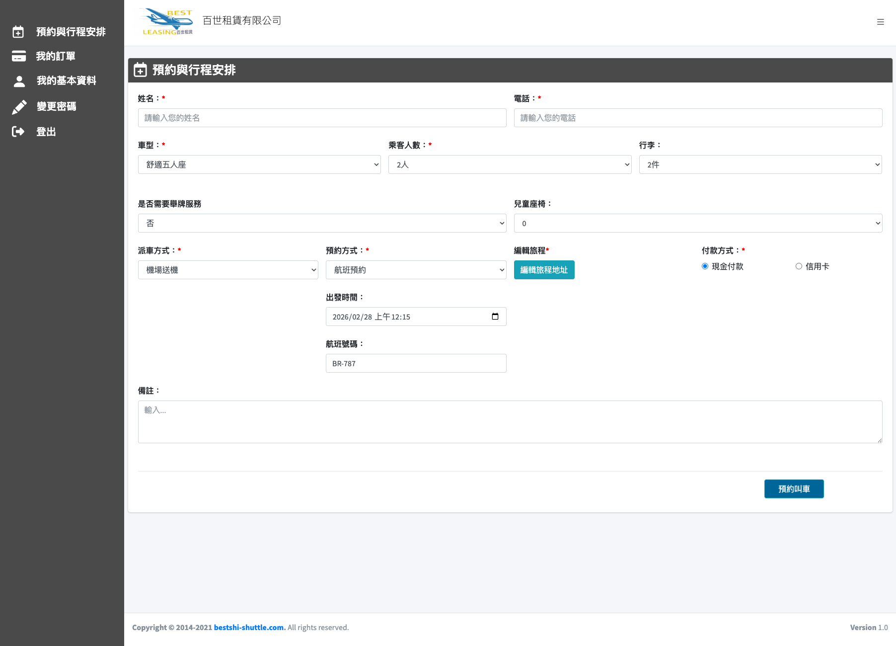 本專案為機場接送公司建置「顧客端線上預約系統」,目的是讓乘客可以自行在線上完成接送預約,不需透過電話人工報價與登記。系統整合會員功能與訂單管理機制,讓預約流程更有效率,同時降低業者人工處理成本。