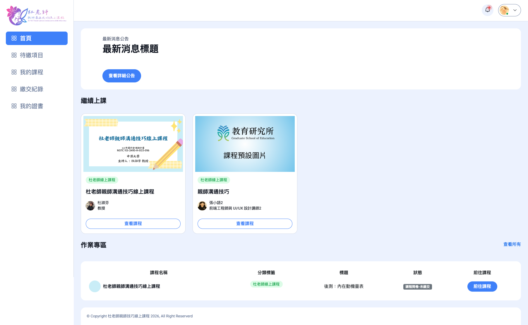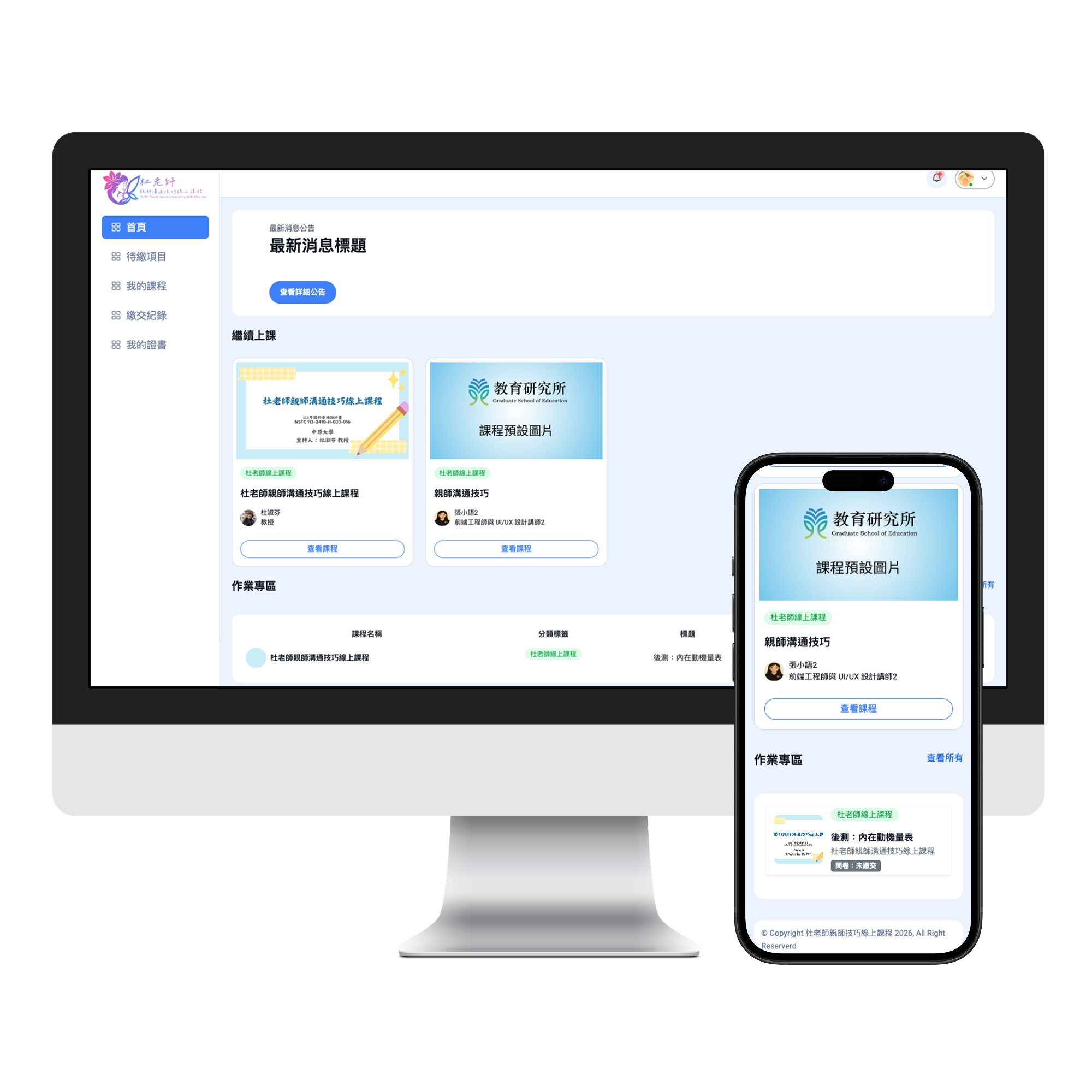 提供專業培訓與系列課程的教育單位,過去多以人工收作業與手動發放證書為主,隨著學生人數增加,行政管理成本逐漸提高。因此希望透過系統化平台,建立完整的線上學習與結業管理流程,提高作業效率並優化學生體驗。