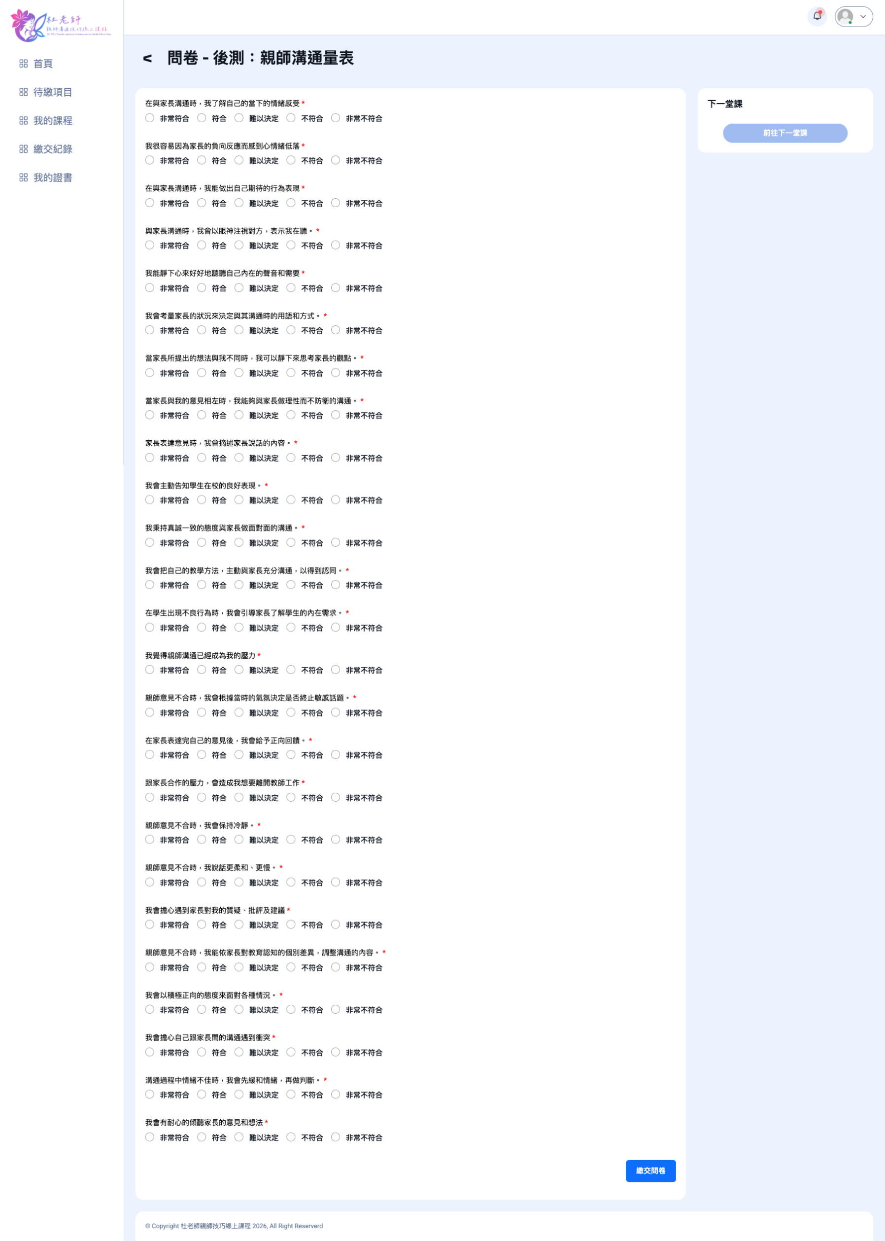 前後測問卷作答畫面