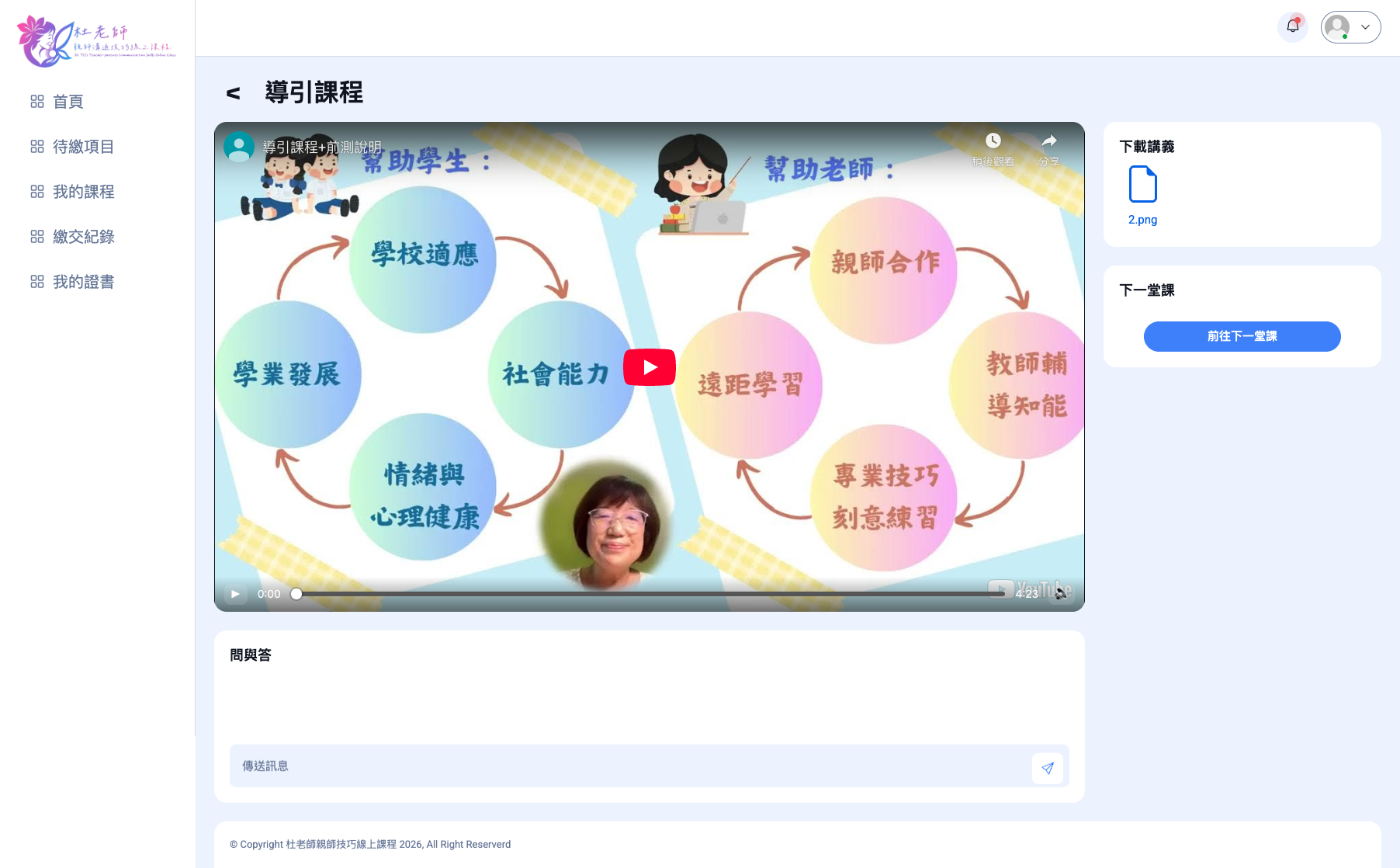 單堂課程畫面示意圖