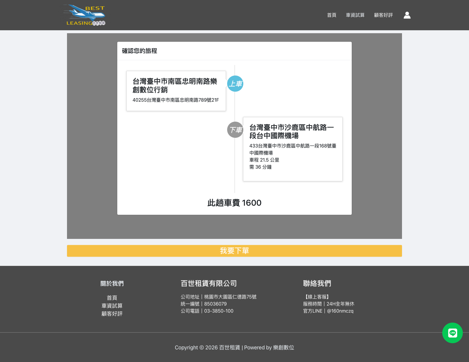 客戶為在地機場接送業者,主要提供桃園機場與市區接送服務。過去多以電話報價為主,常遇到客戶重複詢價或比價流失的情況,因此希望透過官網提升專業形象,同時讓價格透明化,減少人工回覆時間。